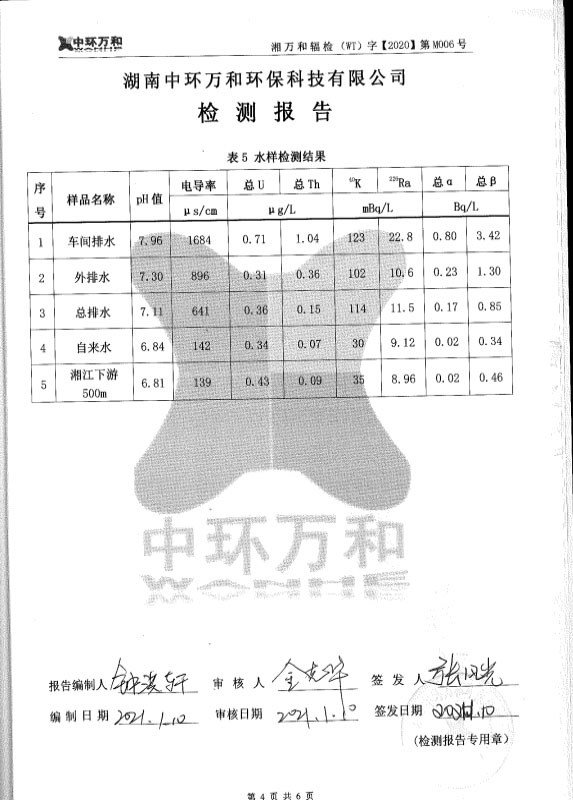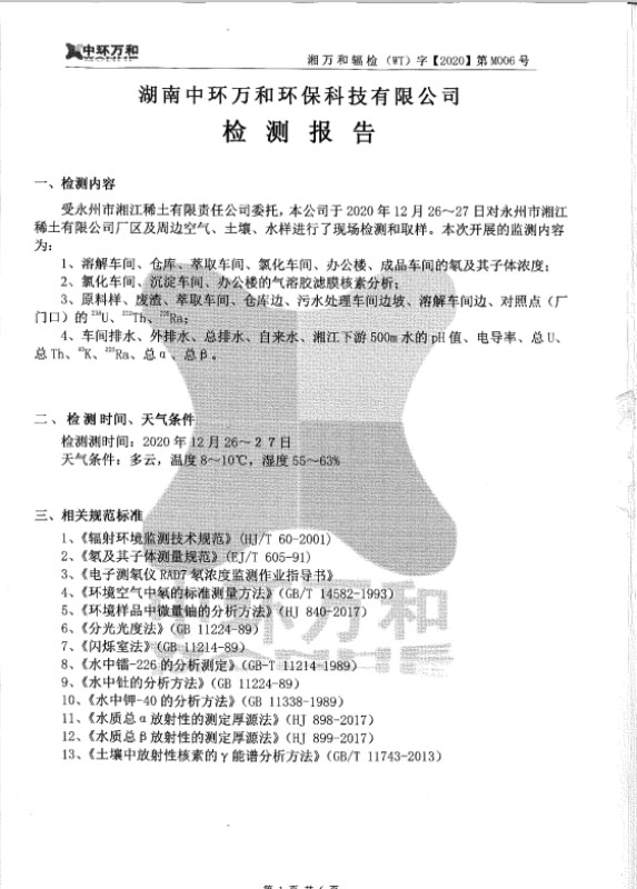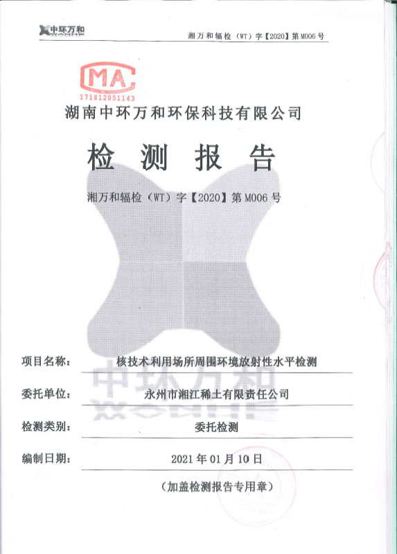 永州市湘江稀土有限責任公司檢測報告