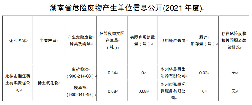 湘江稀土危險(xiǎn)廢物產(chǎn)生信息公示