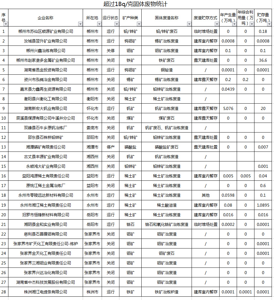 放射性固體廢物統(tǒng)計(jì)-湘江稀土